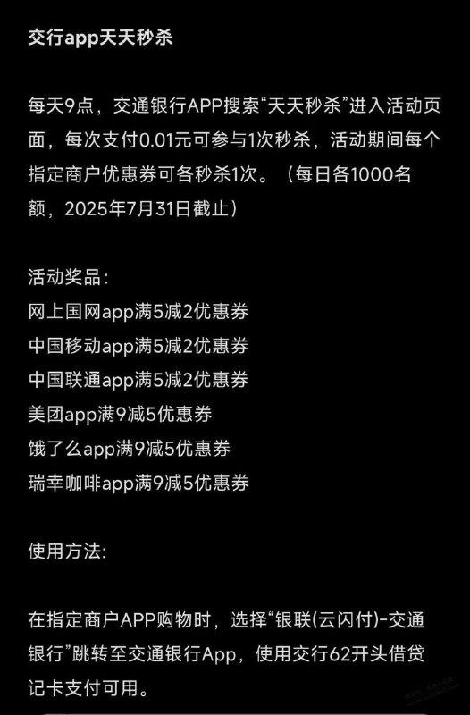 云闪付交行20随机立减,月5次
