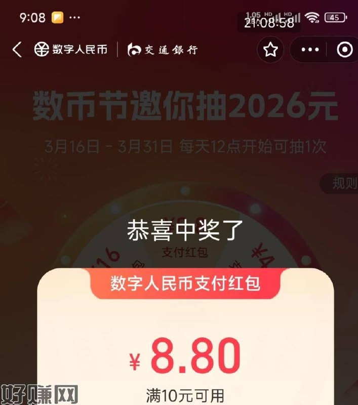 zfb搜:数币节 今天还没抽的试试 - 北京受邀 建行搜:支付购金喜 部分人有0.01亓买8立剪J