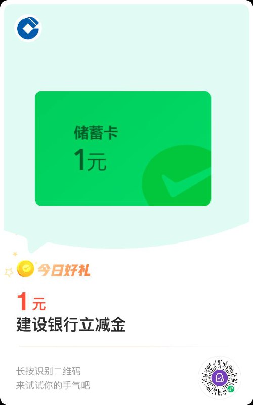 最高66元微信立减金!登陆手机银行-生活-为您优选-翻转福卡,支付1元即可领取4-66元微信立减金,100%中奖!微信支付时可抵扣