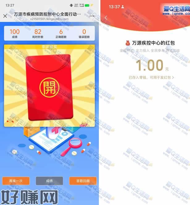 亲测1元秒到 万源疾控中心答题抽奖